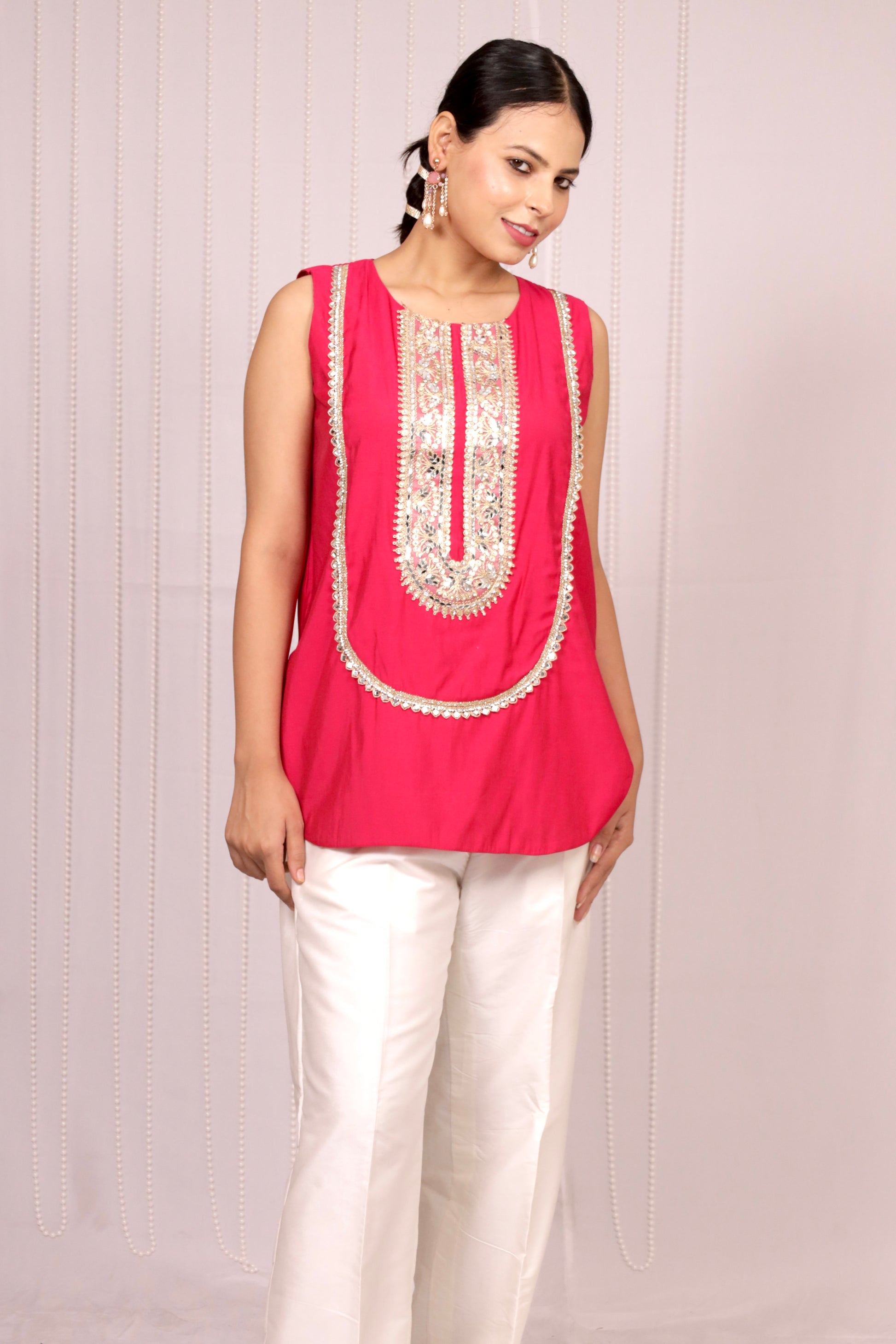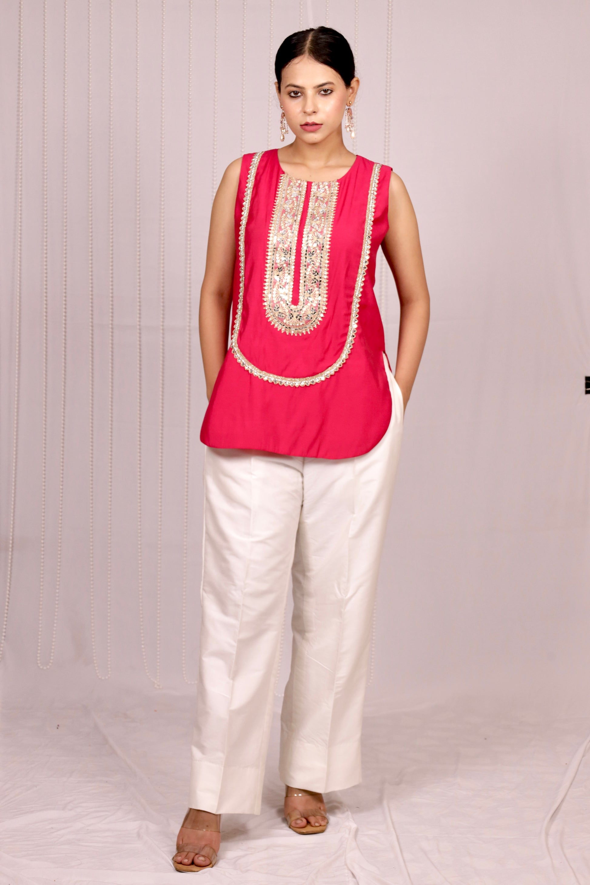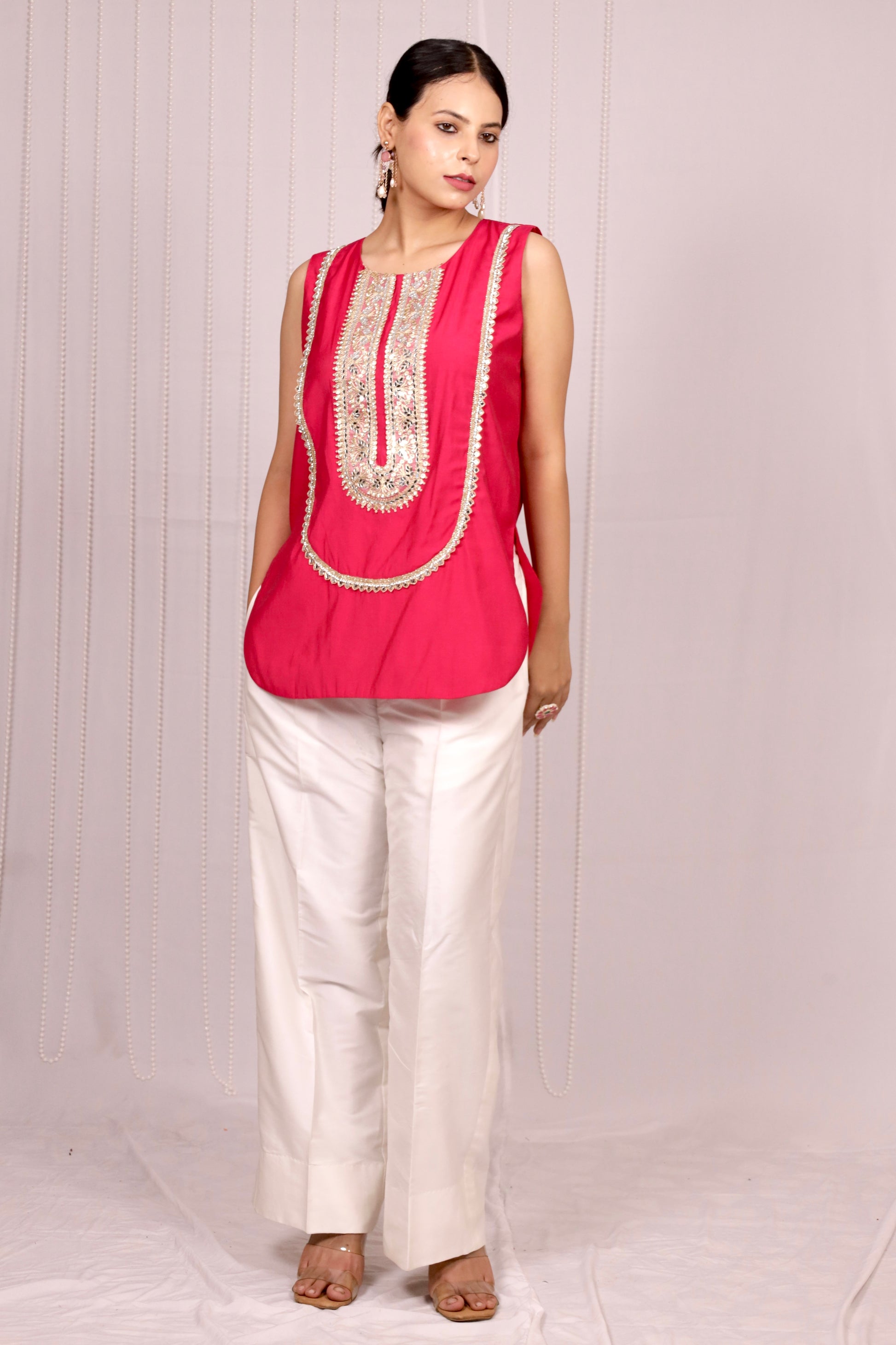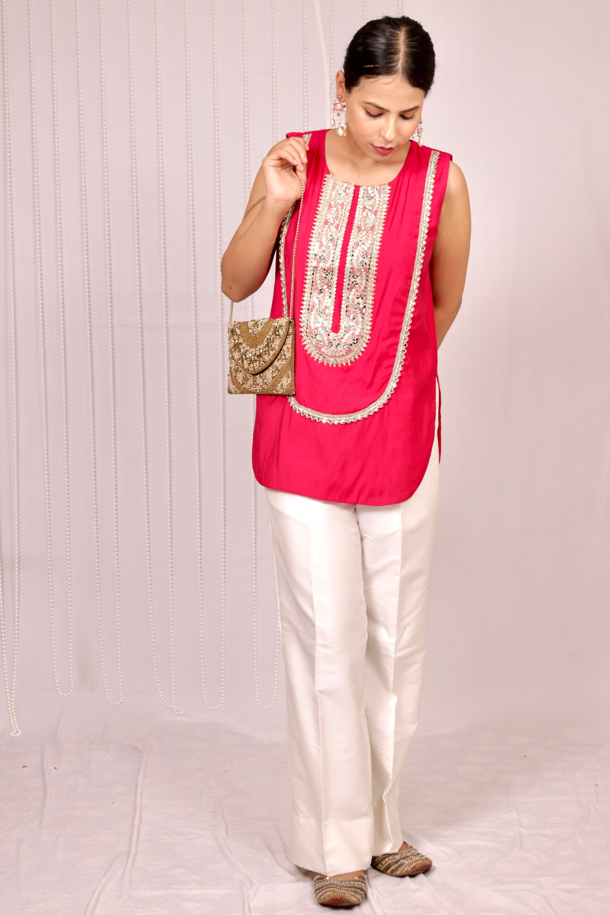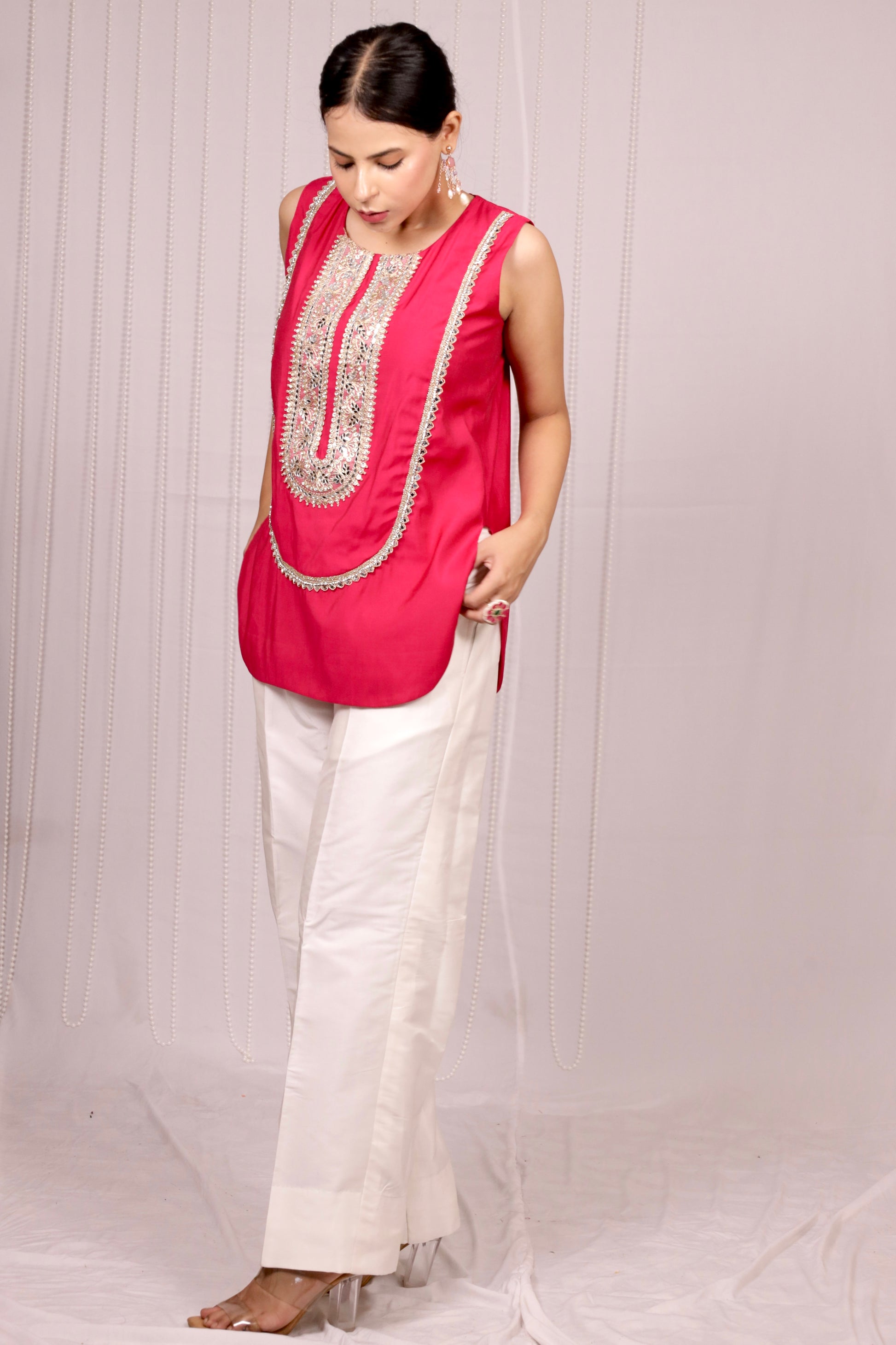 Flaunt your fierce side in Gulabo. A hot-shot fuchsia pink cord set in silk blend fabric, designed with sharp, modern cuts that command attention and guarantee a wow-worthy entrance. Bold, unapologetic, and full of flair