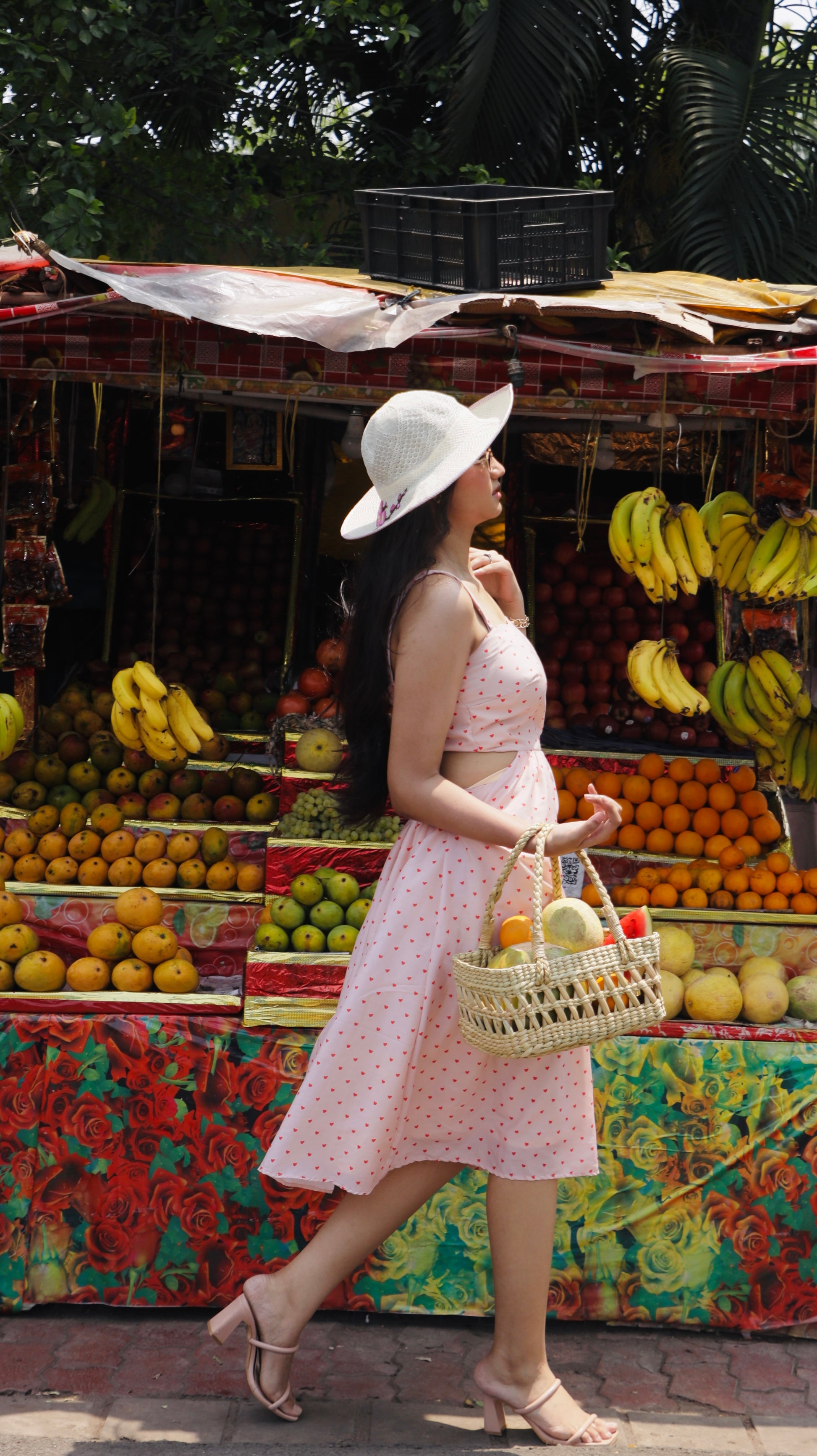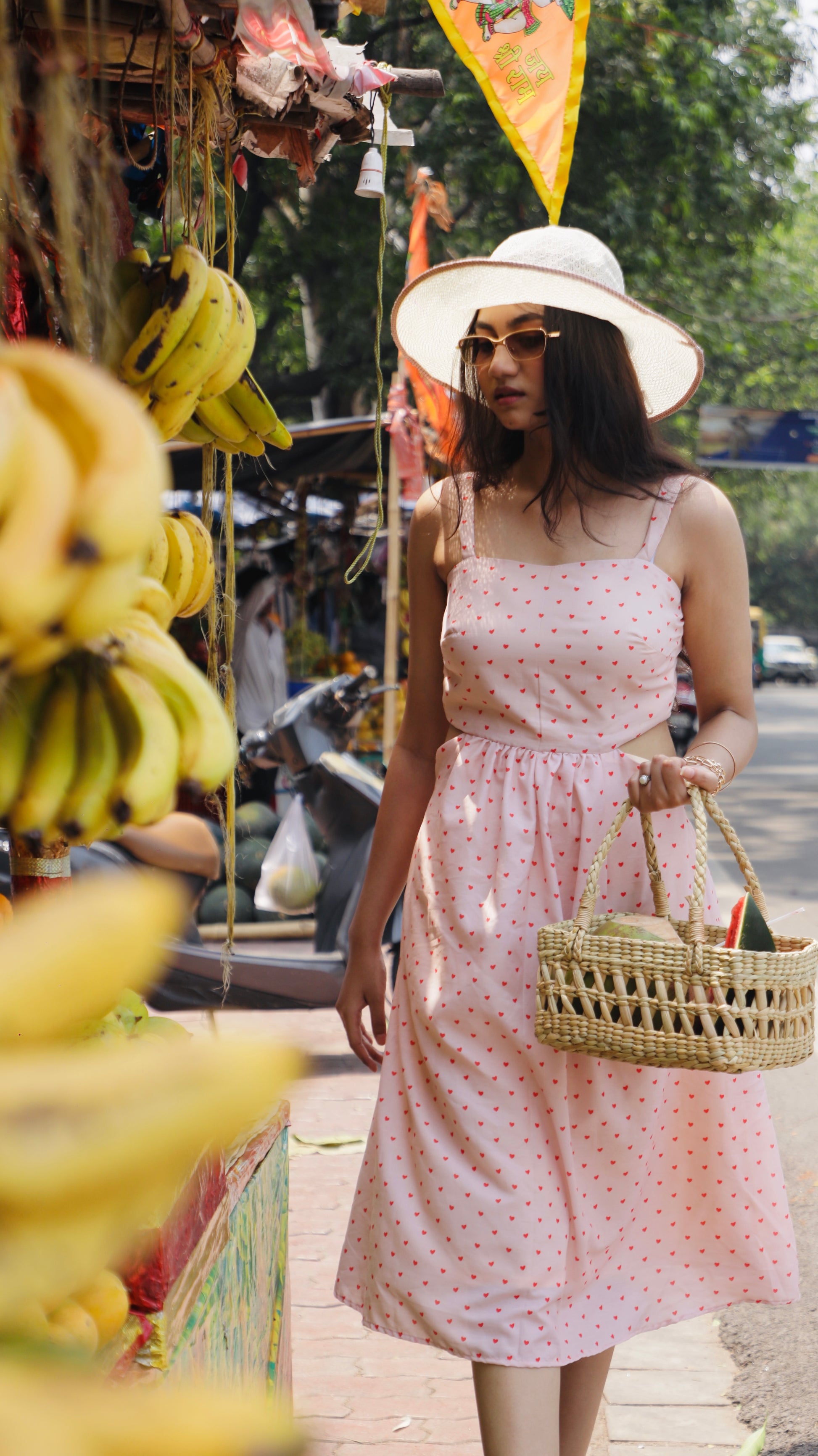 A sweetheart neckline dress sprinkled with mini hearts — contemporary, cute, and made to charm.